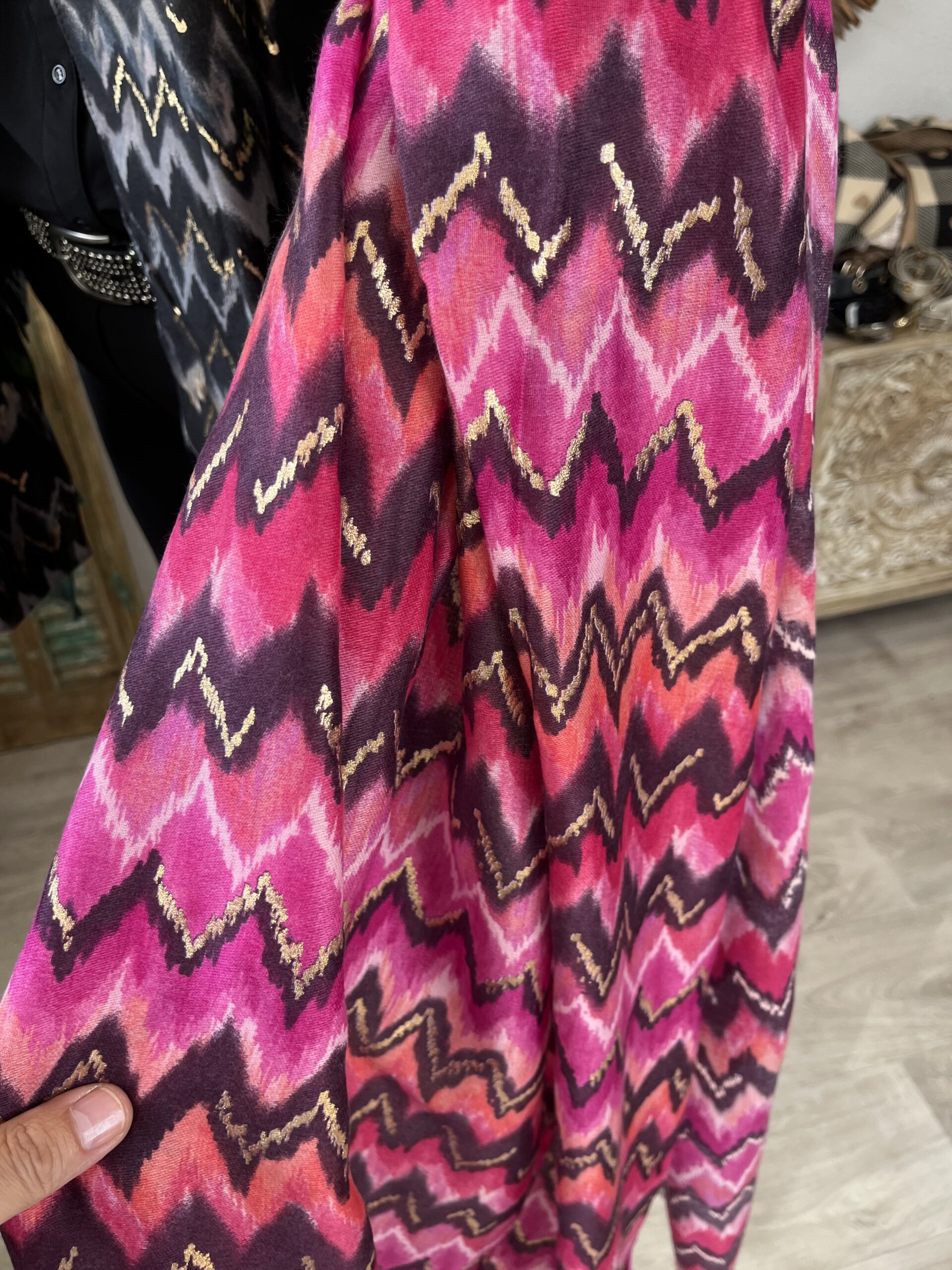 De print van deze Sjaal is geïnspireerd door de prints van Missoni Het is een mooie sjaal in 100% viscose