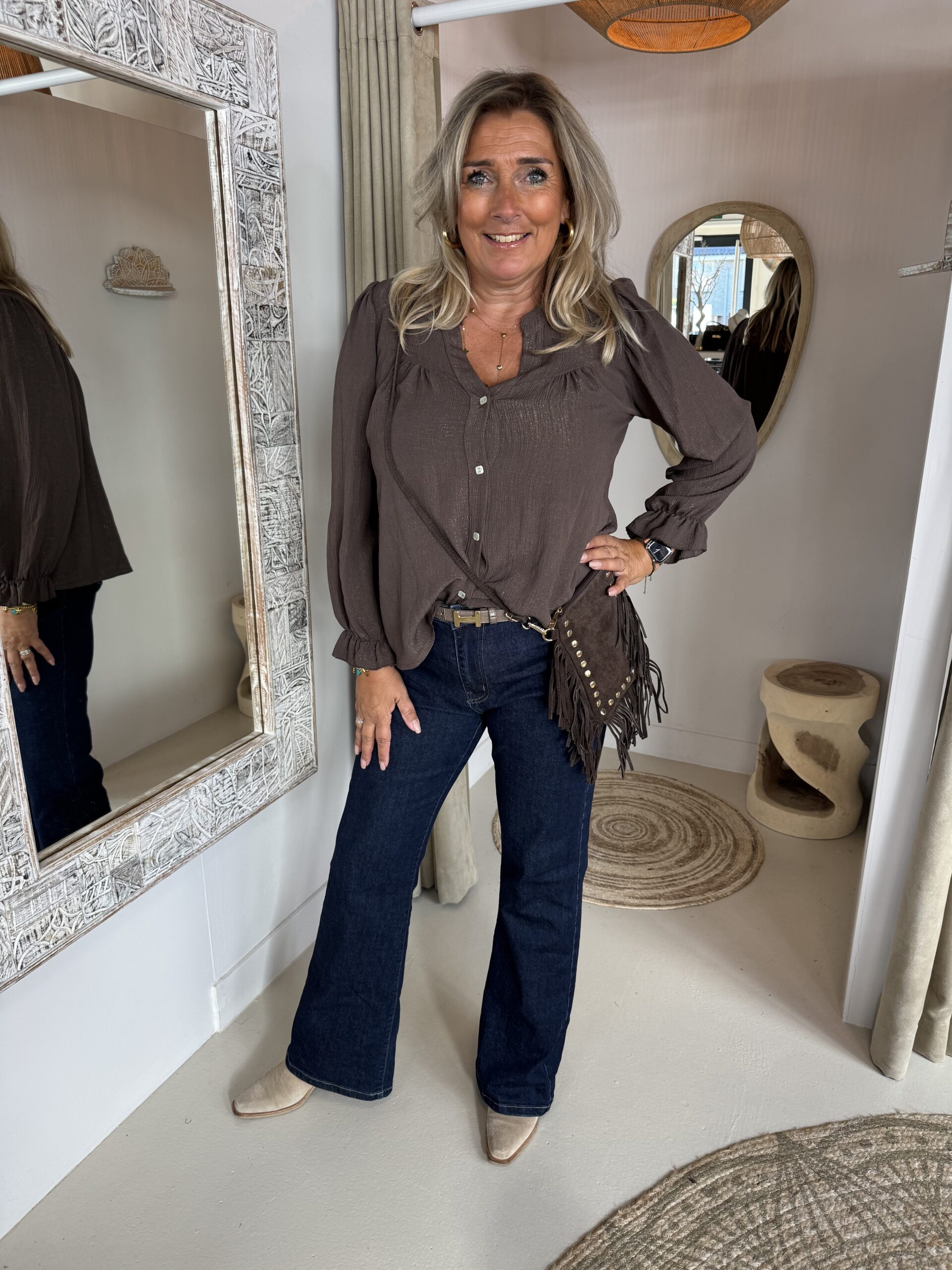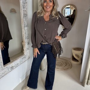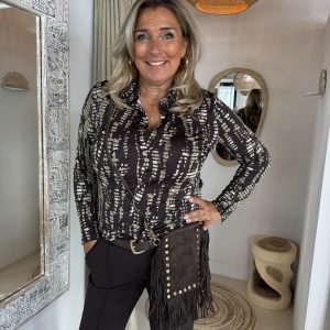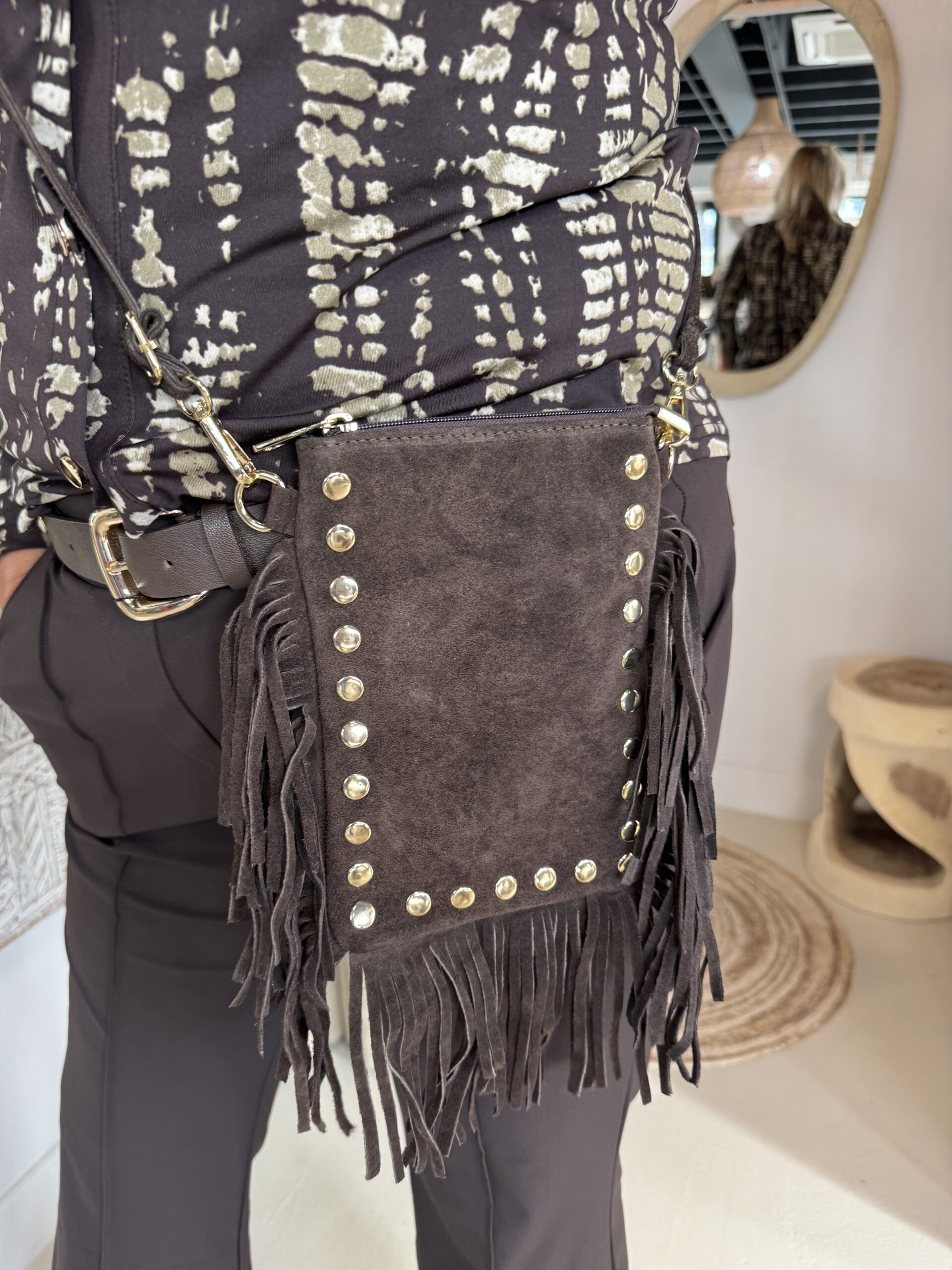 De Danisha crossbody tas is gemaakt van hoogwaardig 100% suède leer en afgewerkt met goudkleurige hardware en speelse franjes.