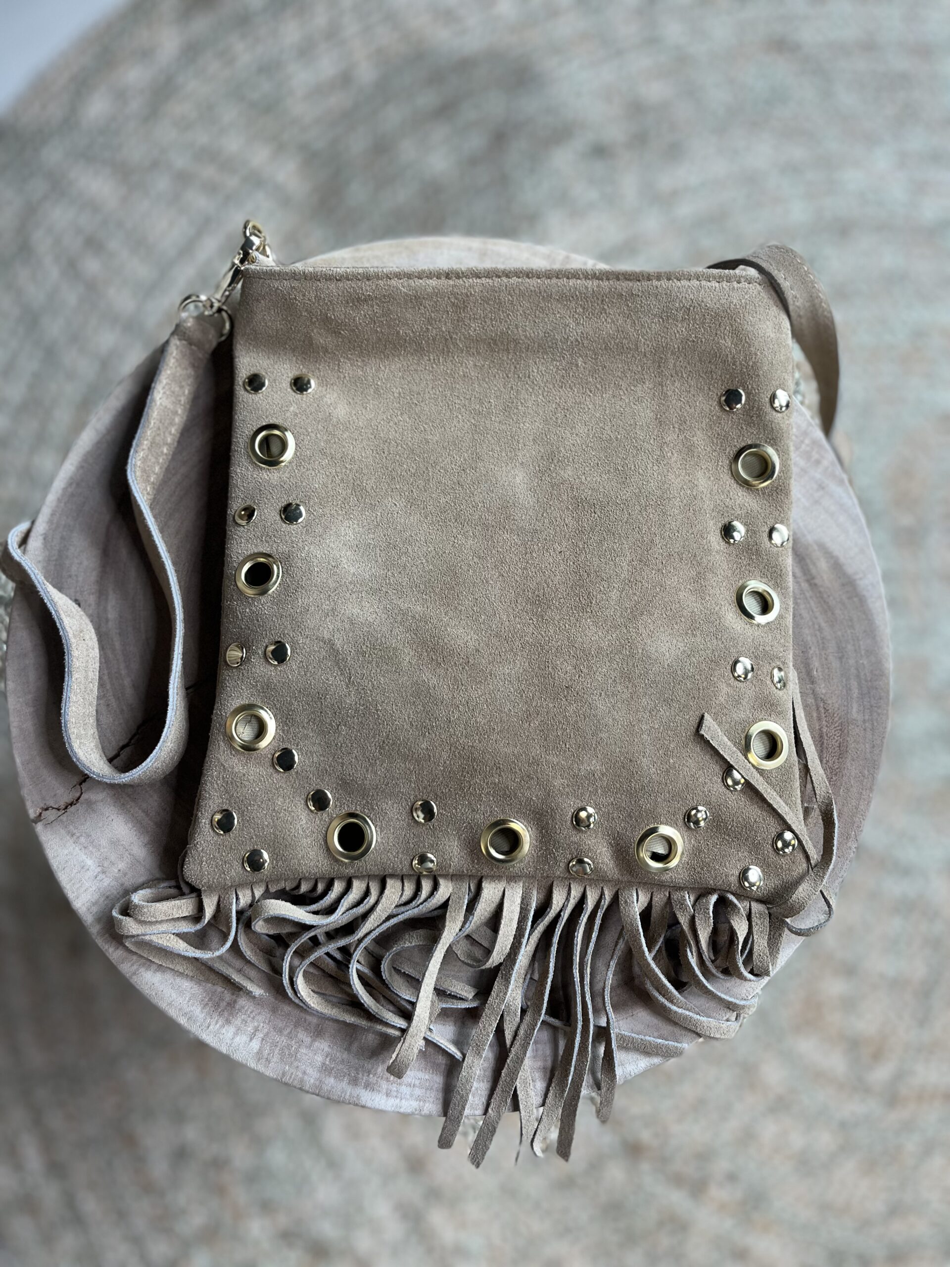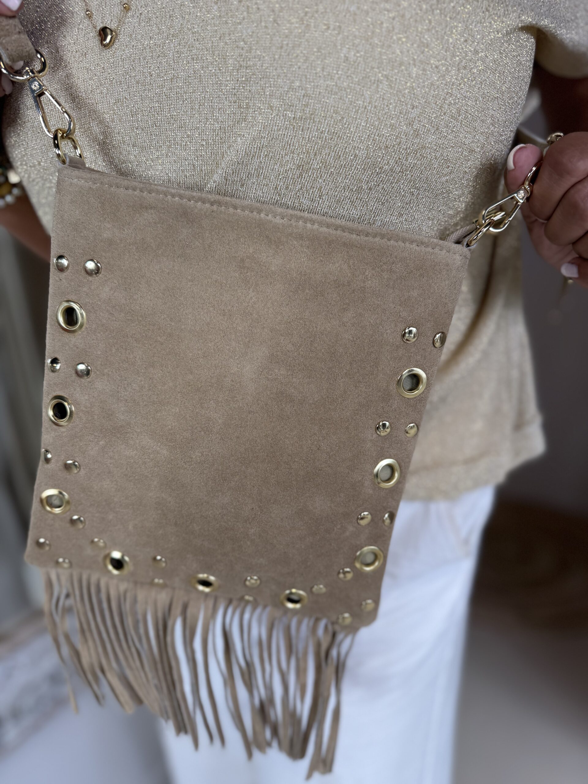 De product foto’s van de taupe kleurige tas zijn iets “geler” dan de echte kleur. Het is echt zand suede, heel mooi!