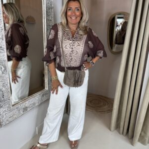 Het is een crossbody model met een afneembaar en verstelbaar hengsel.
