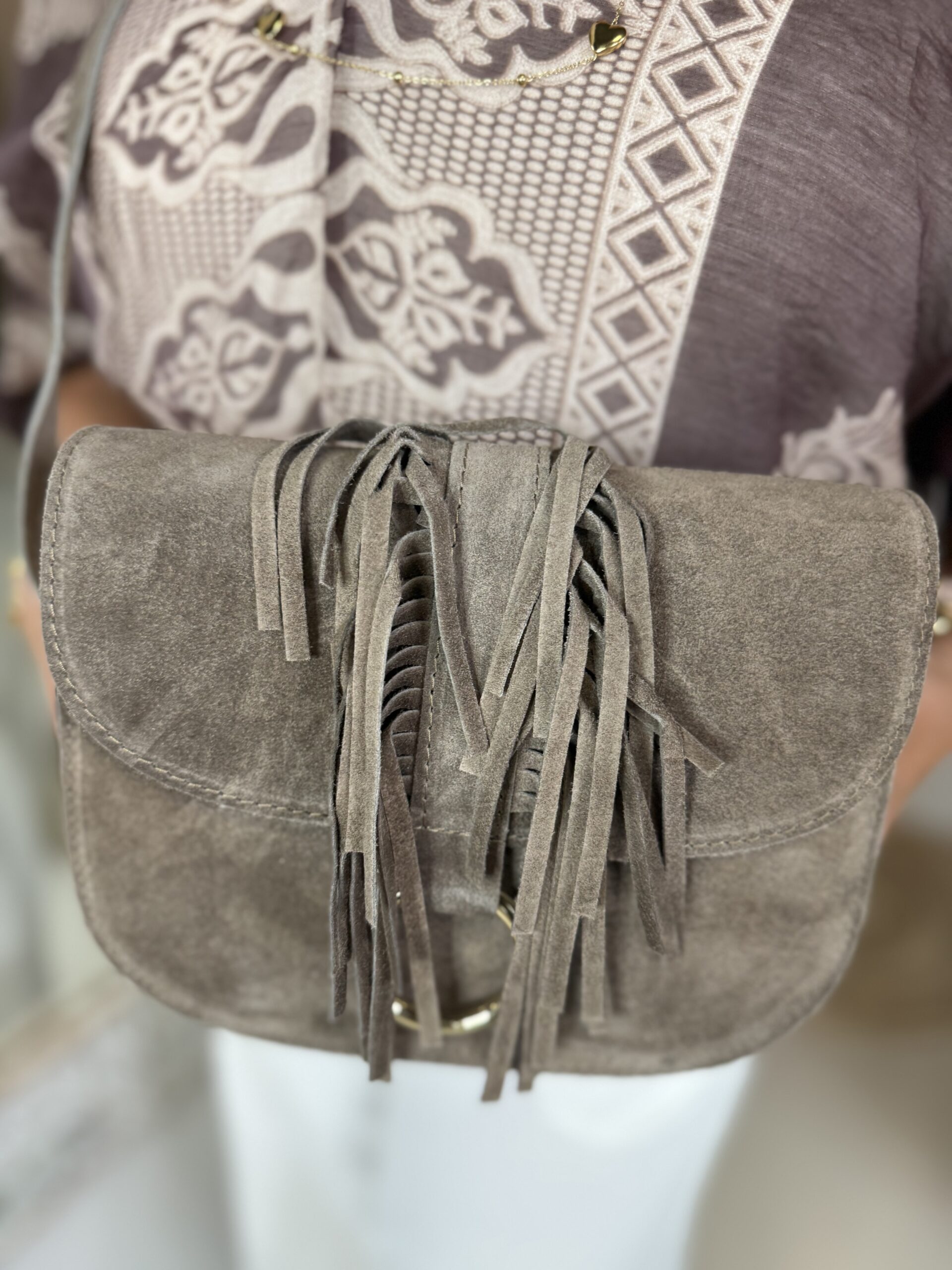 Deze mooie leren suede tas is super leuk en stoer in deze mooie kleur