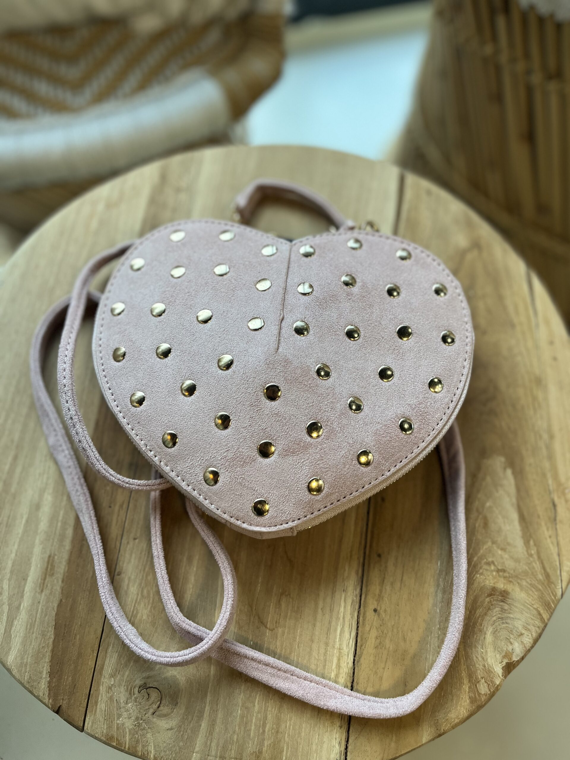 Suedine Hartjes Tas 80163 met Studs Roze