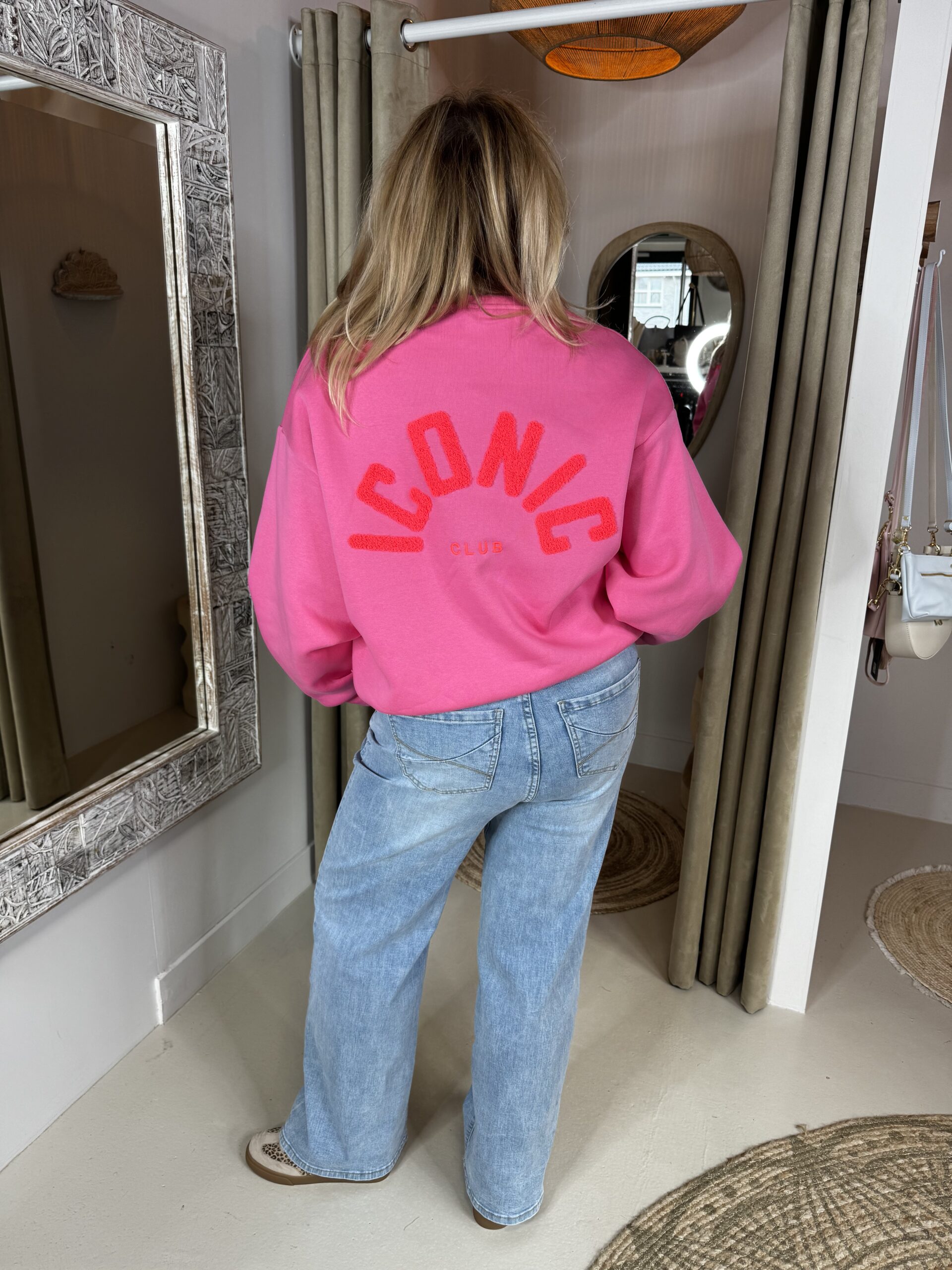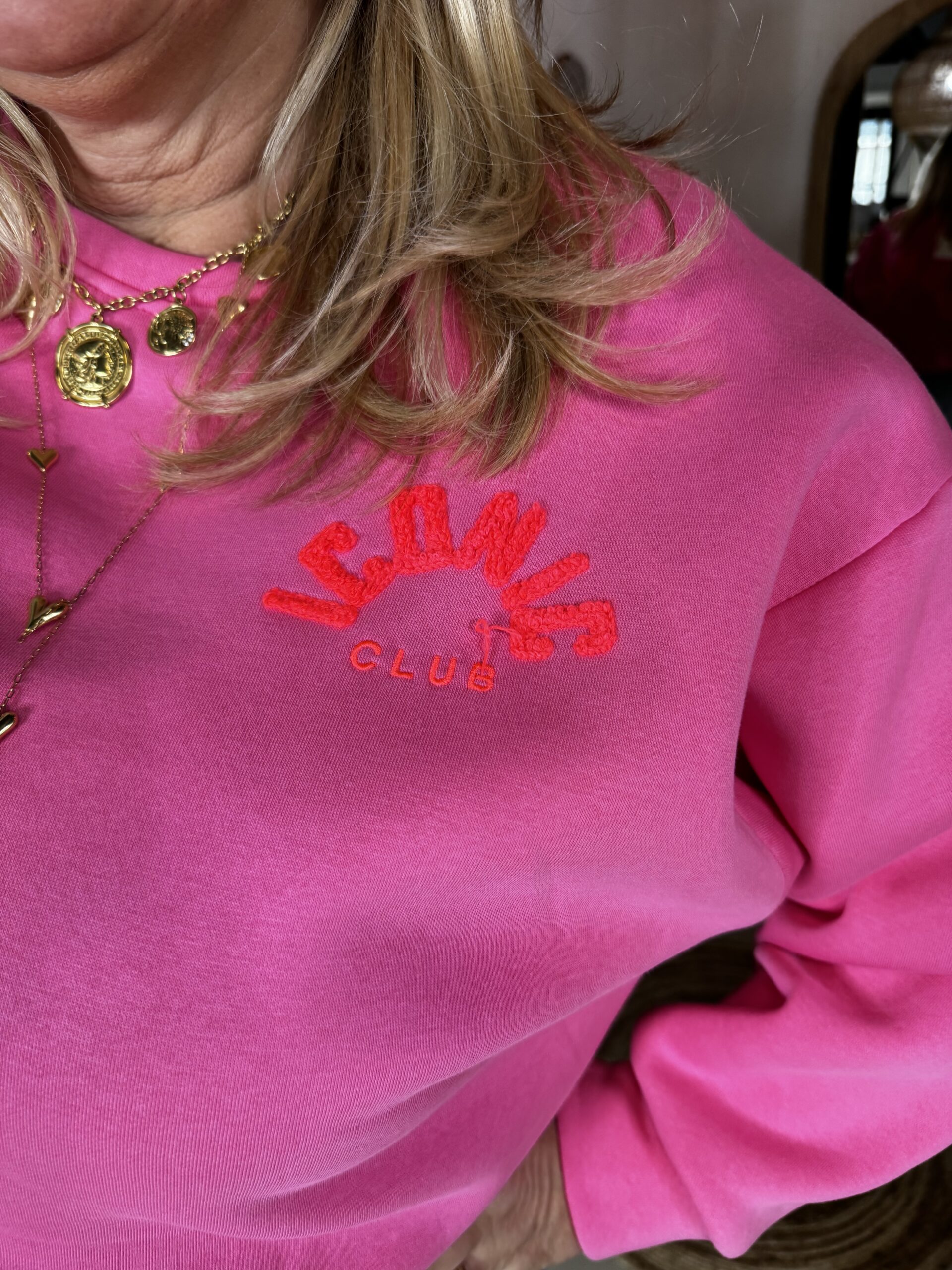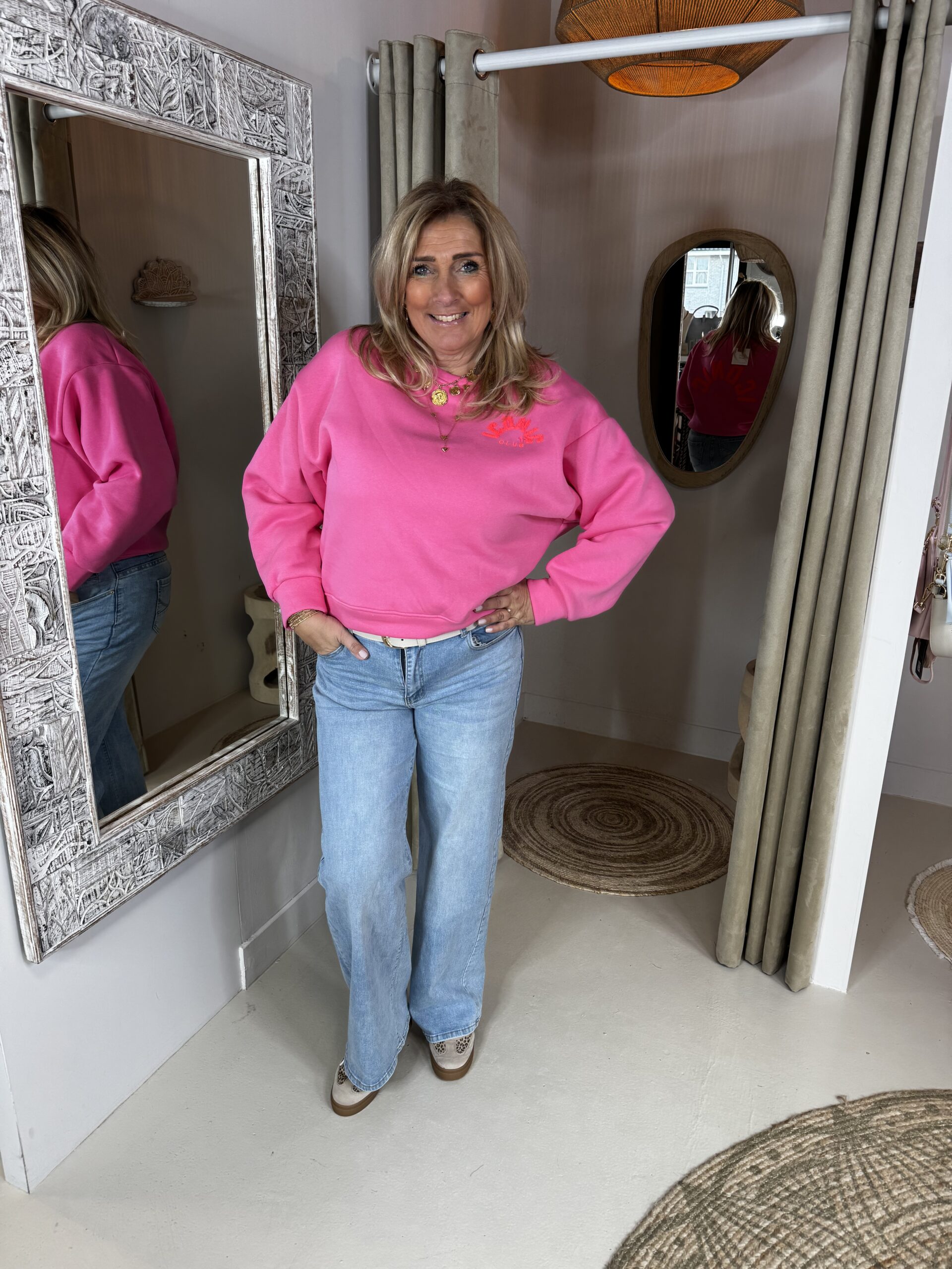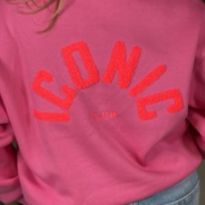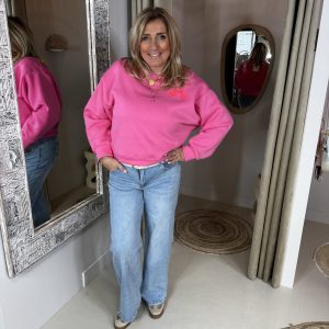 Deze sweater is een absolute favoriet. Heerlijke fleece jogging stof, leuke teddy letters in een contrasterende kleur
