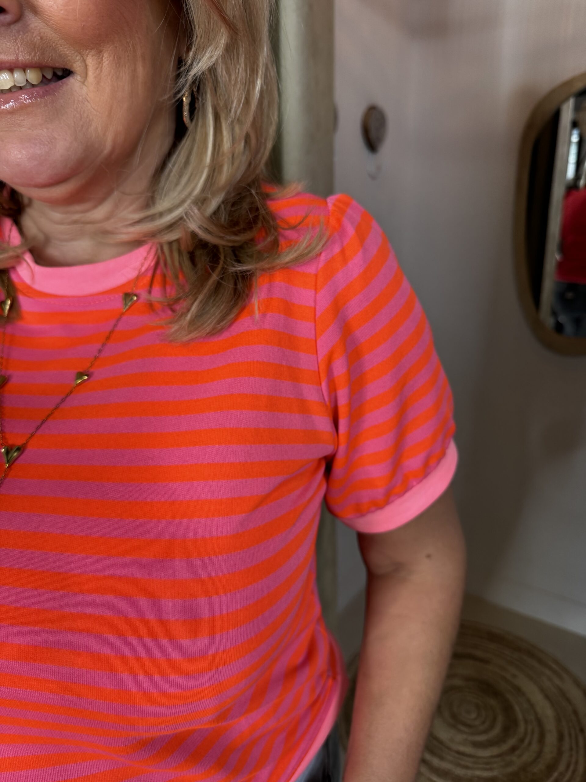 Sweater Streep Q1170 Roze Koraal is een heerlijke sweater die je zo aanschiet