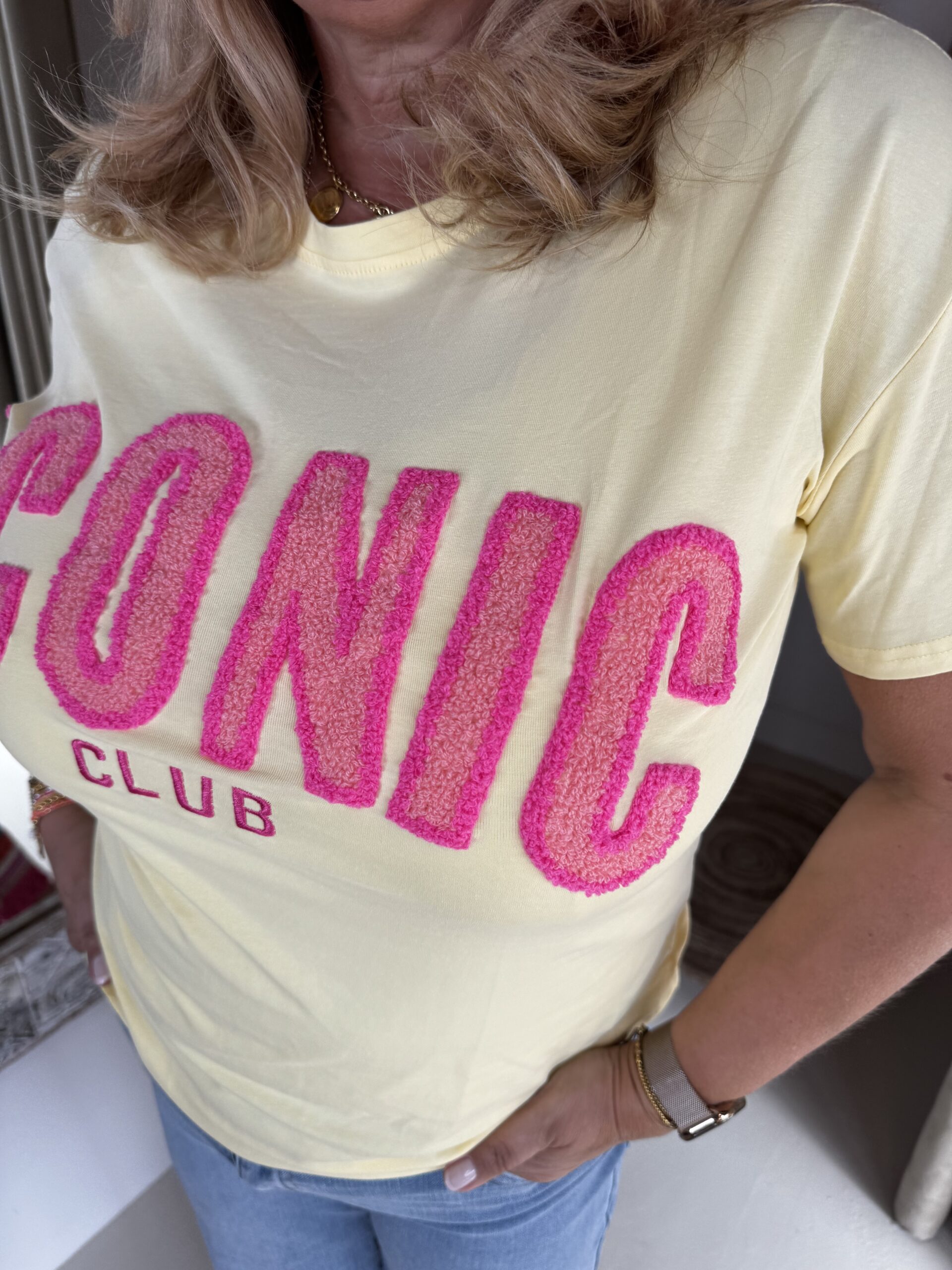 T-Shirt Iconic Club 8011516 Butter Yellow is een basic t-shirt met een ontzettende leuke opdruk van Teddy letters in vrolijke kleuren