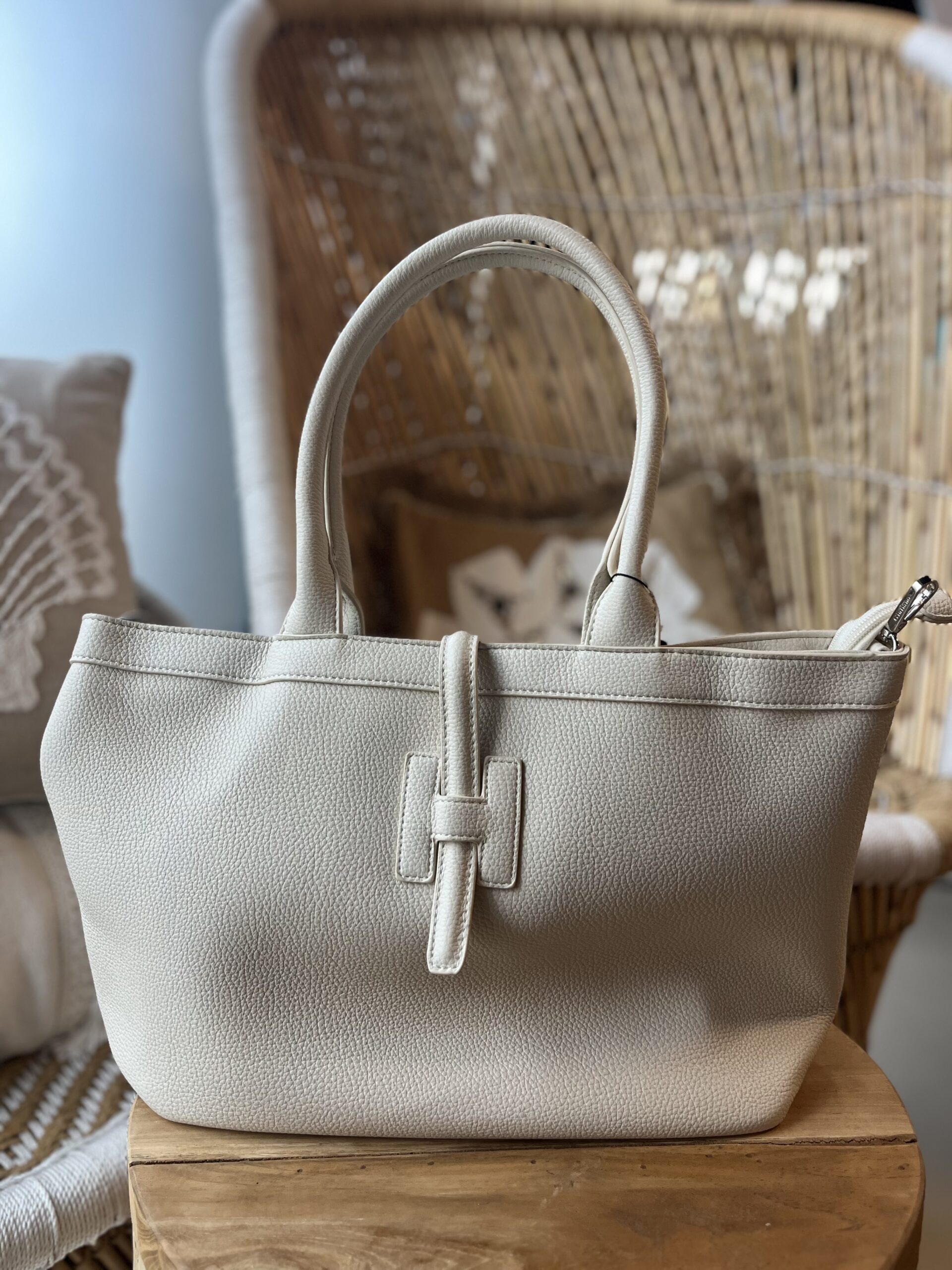 Deze Tas 20168 Met H-Gespdetail- Pu Leer Beige is een prachtige tas in Pu leer
