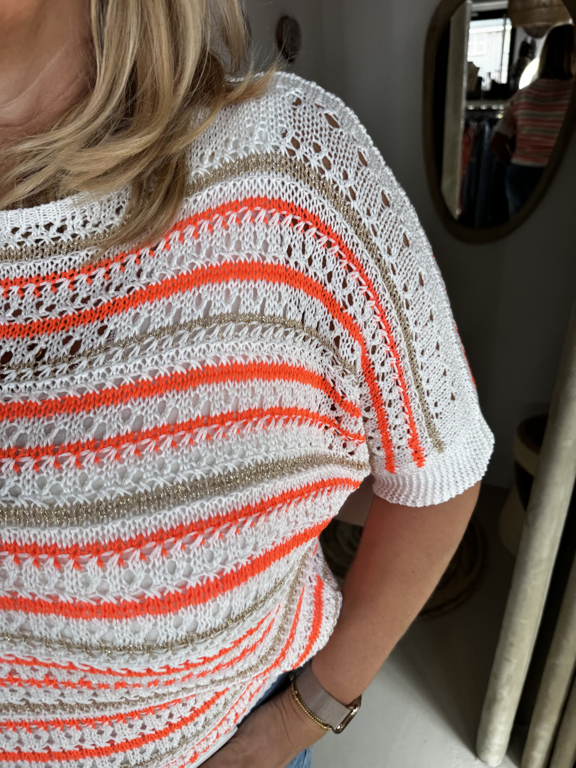 Top Katy Koraal Wit Goud is een leuke gehaakte top met goud als detail