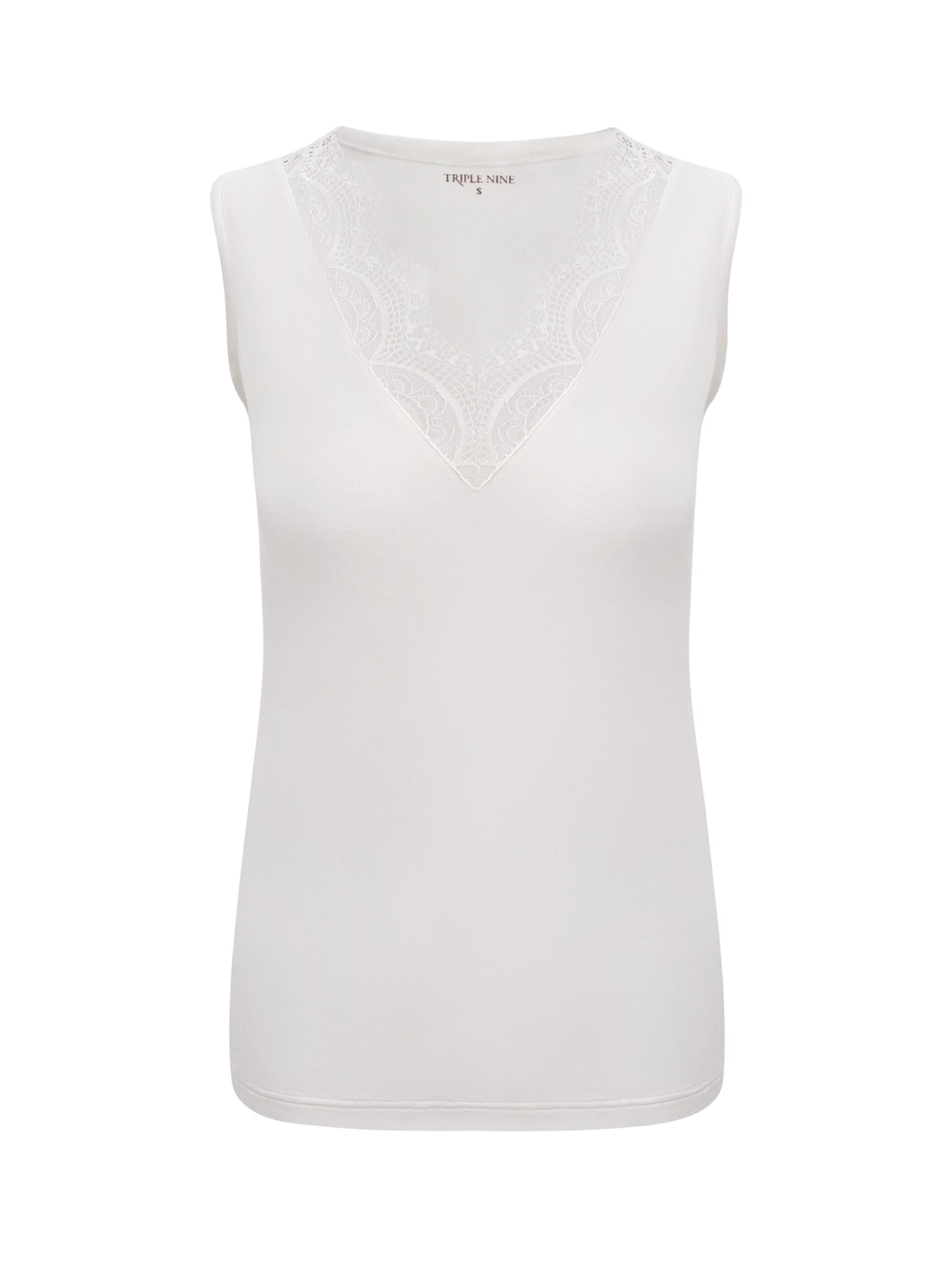 Deze mooie Triple Nine Cashmere Top 9005 Off-White is ideaal voor onder een blouse. vest of jasje.