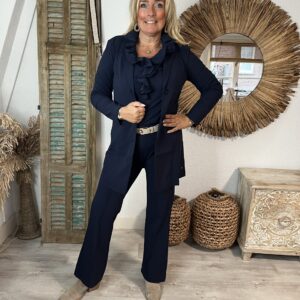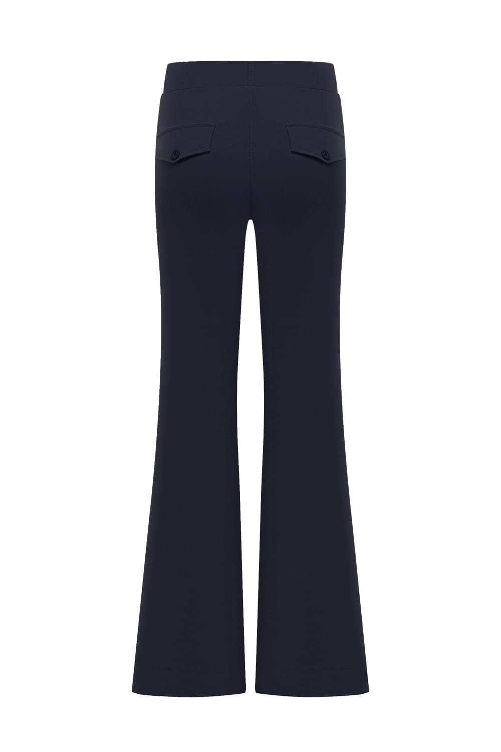 Deze travelstof broek is heeft steekzakken en klepzakjes achter. Voor zit een mooie naad, waardoor deze broek een mooie “pantalon” uitstraling heeft