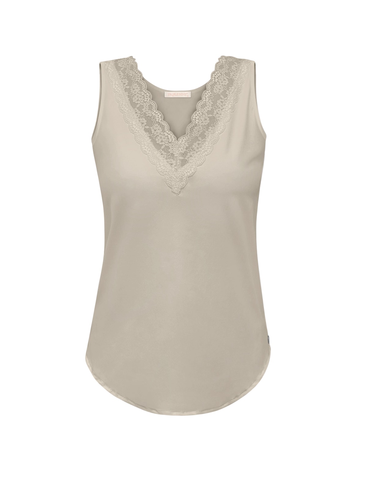 Deze mooie Triple Nine Travelstof Top Lace 6913 Beige is een ideale basic voor onder een blouse, vest of jasje