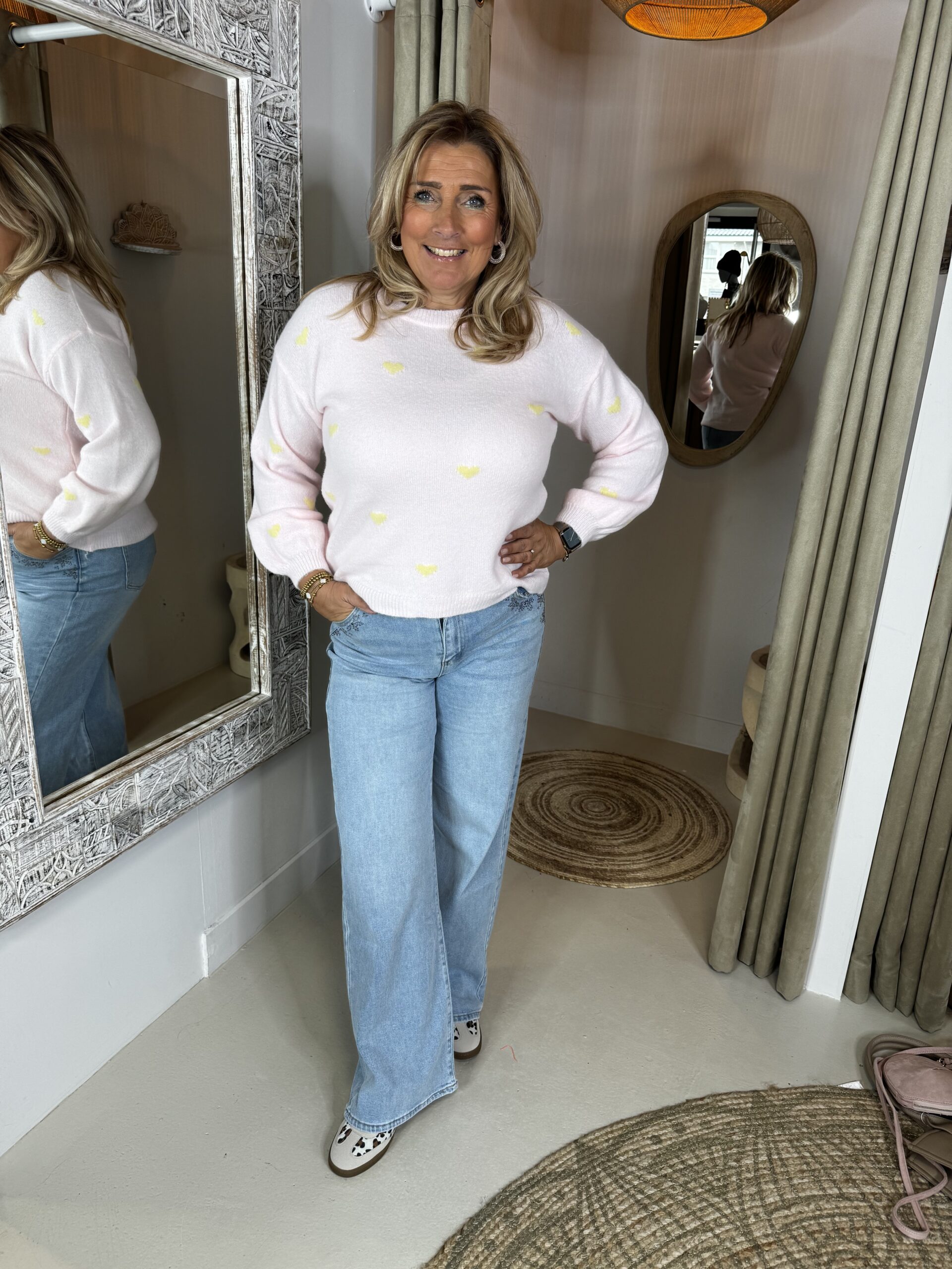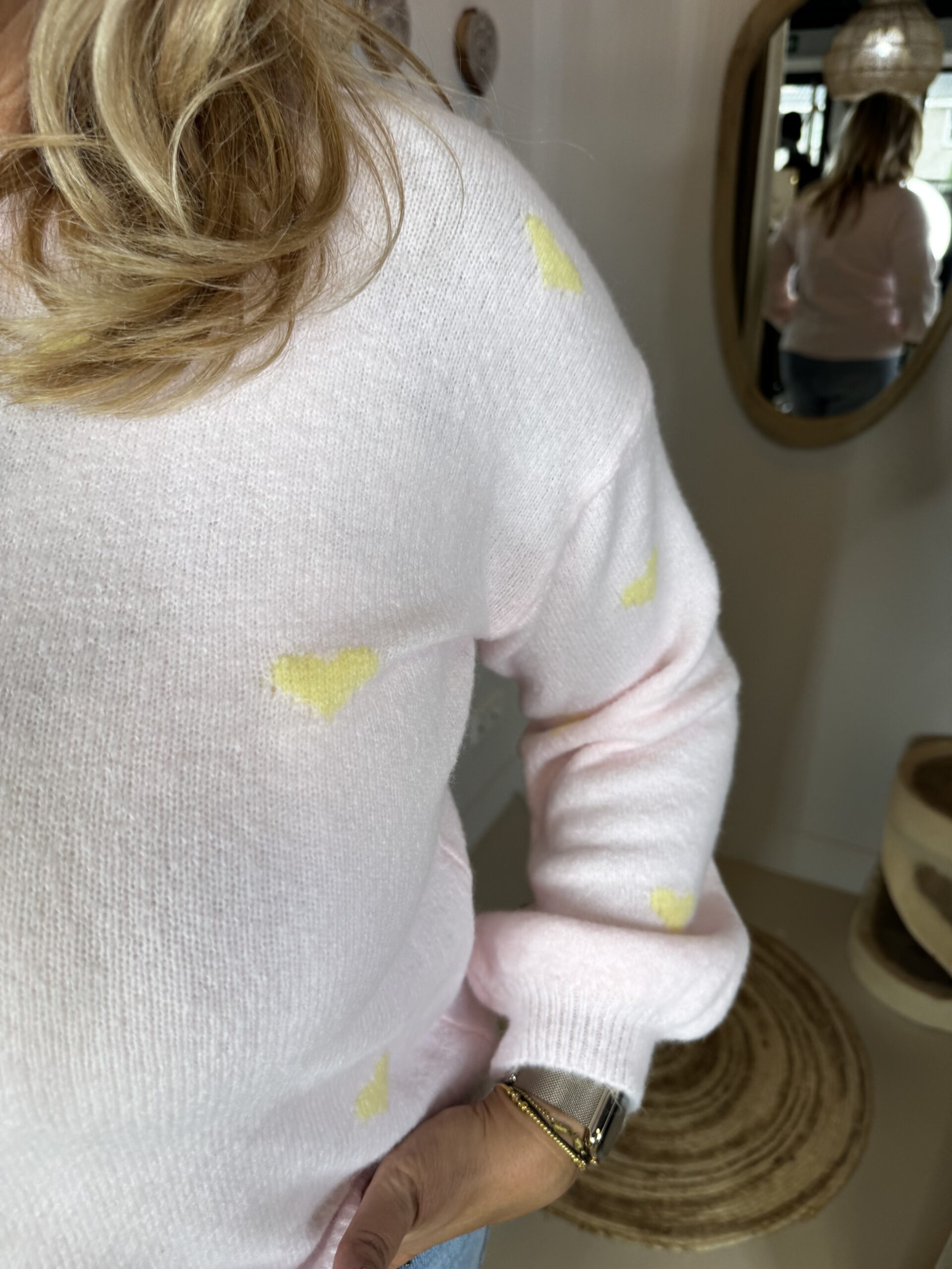Trui Amber 1835 met Hartjes Roze Geel