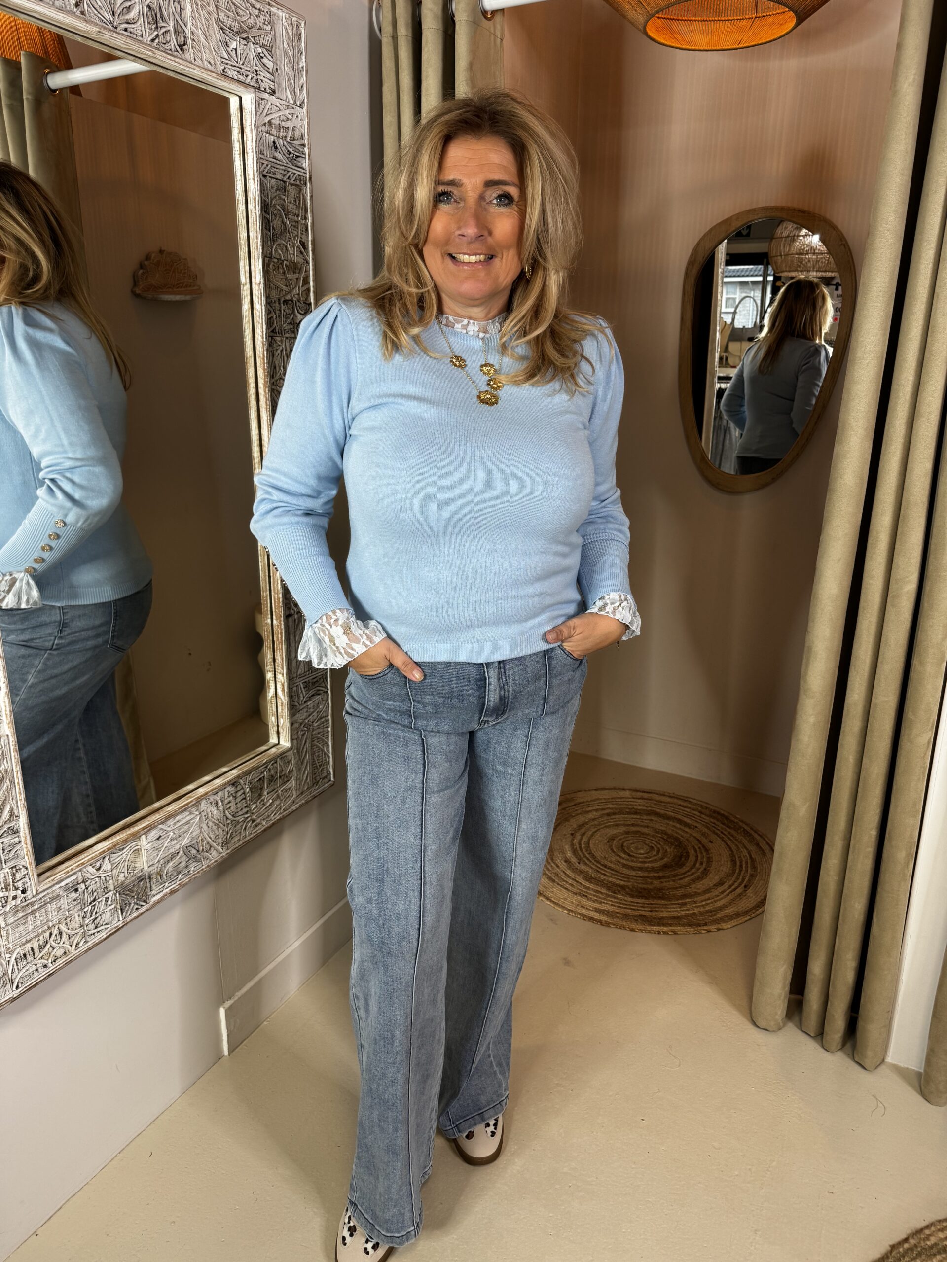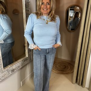 Trui Sofie met subtiele Pofmouw Blauw is een fijngebreide trui en een perfecte basis met een upgrade.