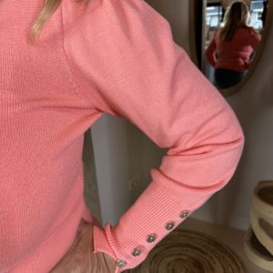 Trui Sofie met subtiele Pofmouw Koraal is een fijngebreide trui en een perfecte basis met een upgrade.