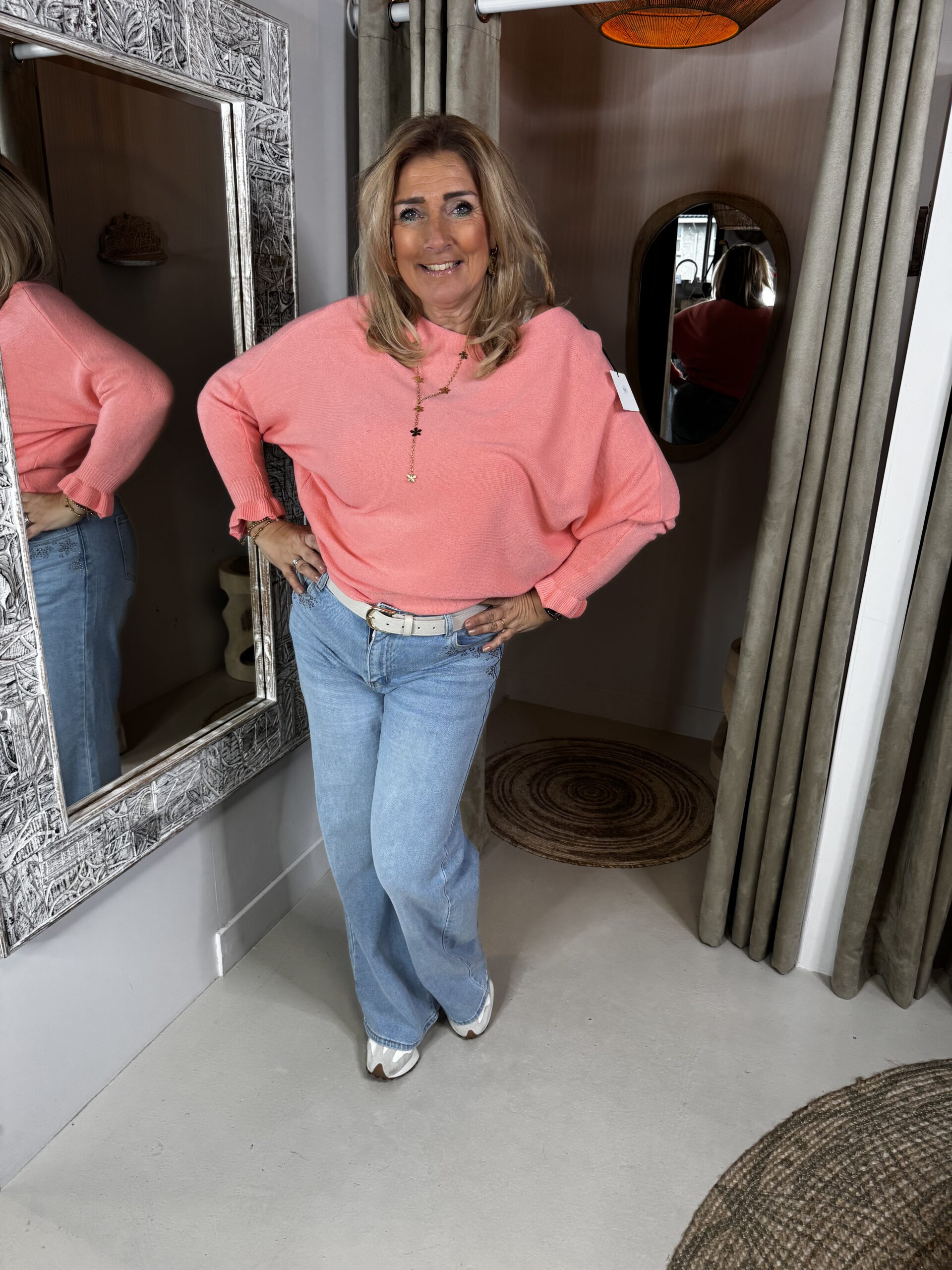 Vleermuis Trui Ruffle Mouw Koraal