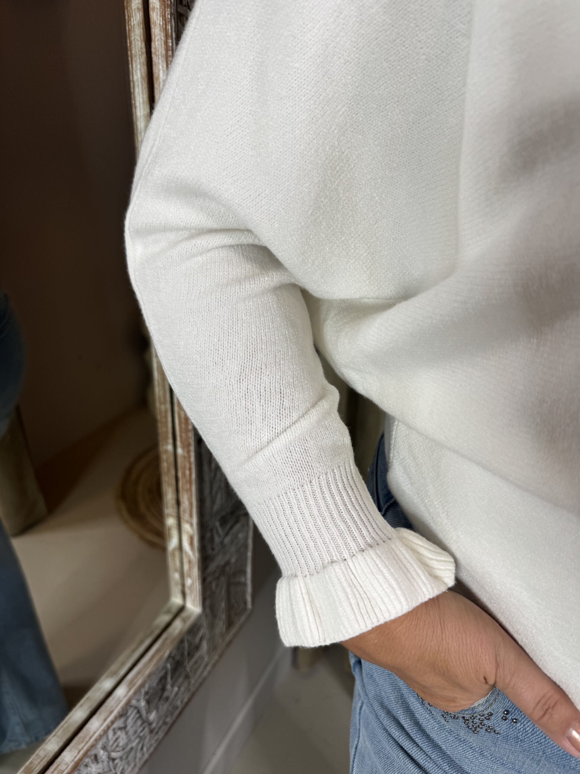 Vleermuis Trui Ruffle Mouw Off-White