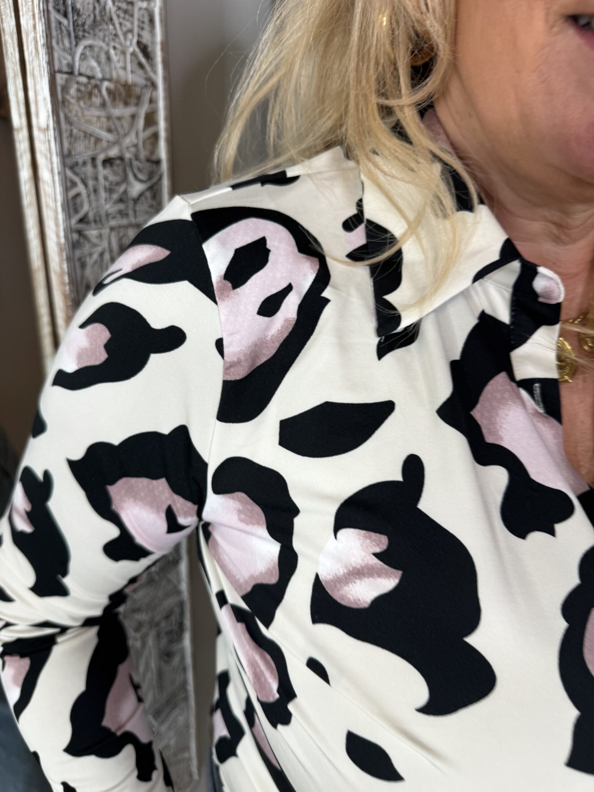 Zachte Travelstof Blouse Swan 10199 Roze Leopard Print is weer een nieuwe print in deze serie