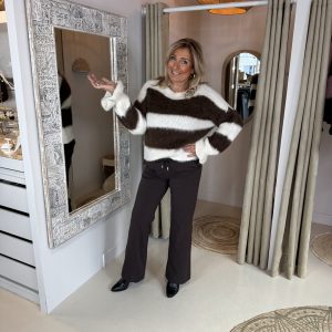 Zachte Trui Streep 1890 Bruin/Off-White