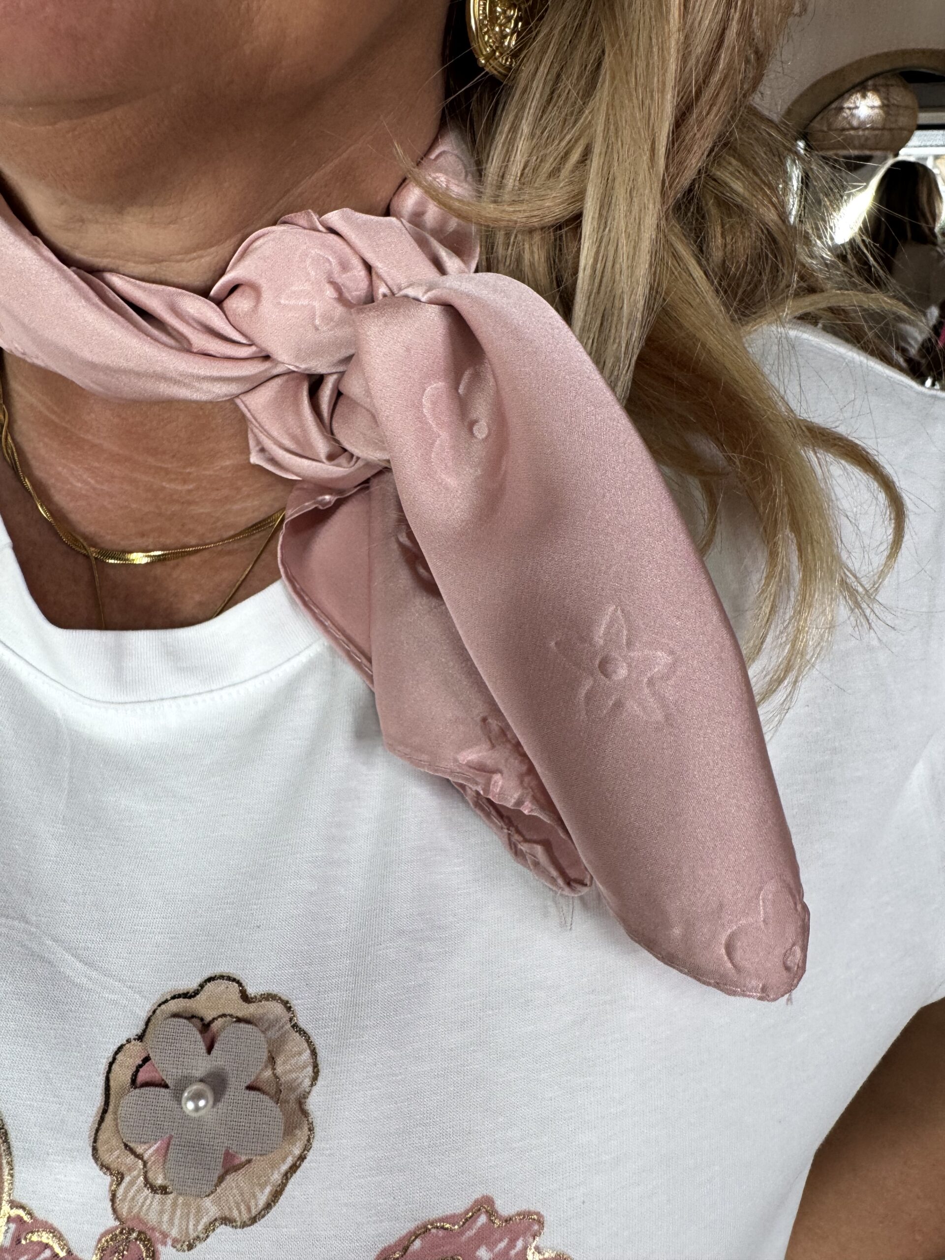 Zijdezacht Vierkant Sjaaltje 18105 Rozeis een mooi zijdenzacht sjaaltje in een leuke print