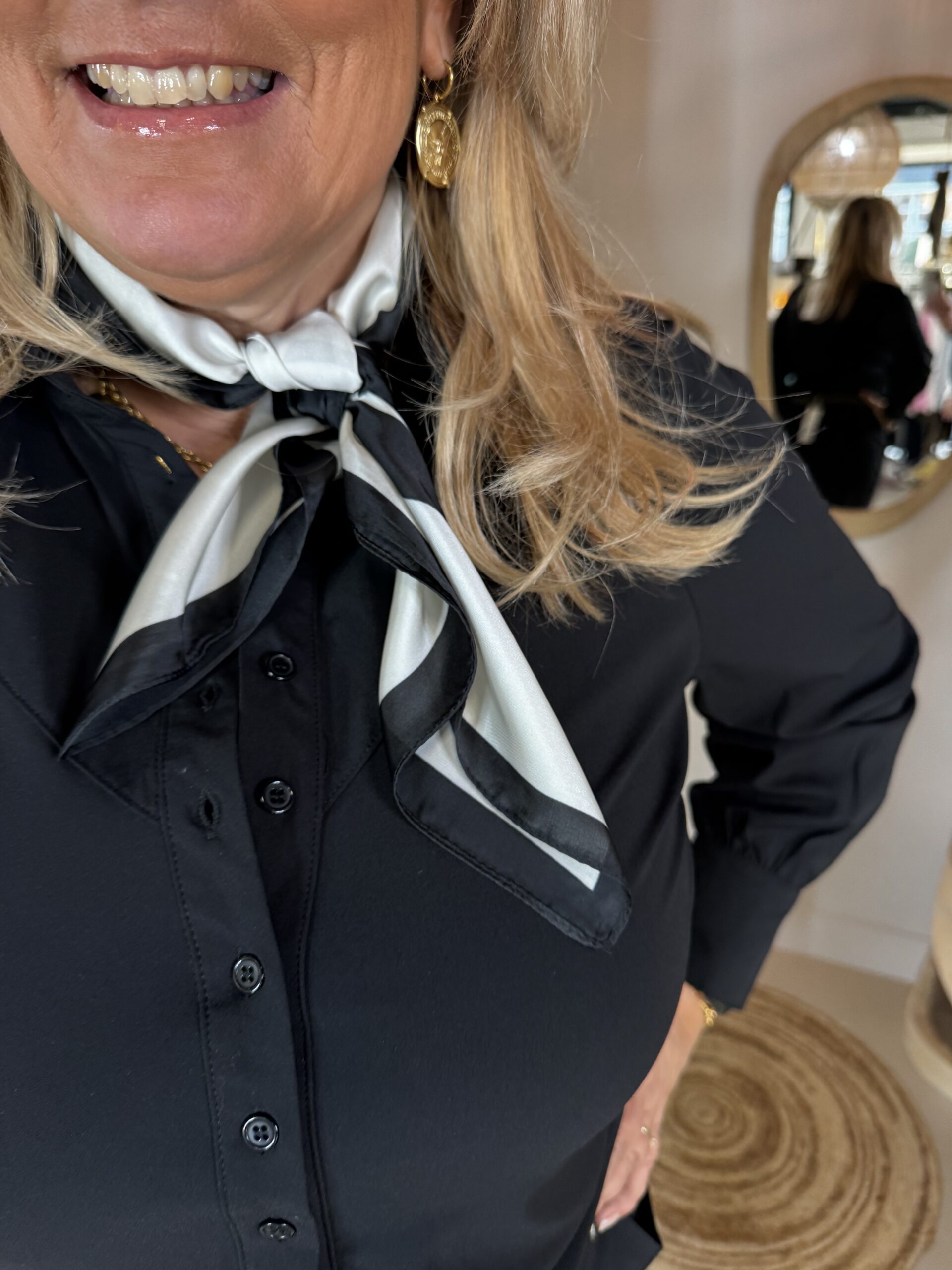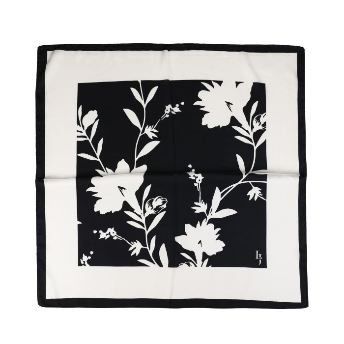 Zijdezacht Vierkant Sjaaltje 70500 Zwart is een mooi zijdenzacht sjaaltje in een leuke print